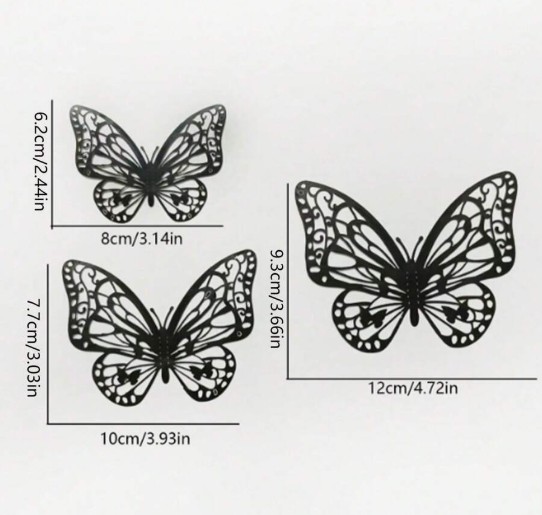 3D dekoratiivliblikad 12 tk pakis